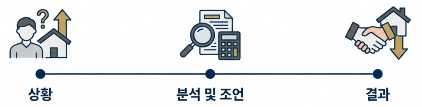 고객님은 “집값이 많이 올랐으니 그 부분을 놓치는 것 같다”고 느끼셨지만,