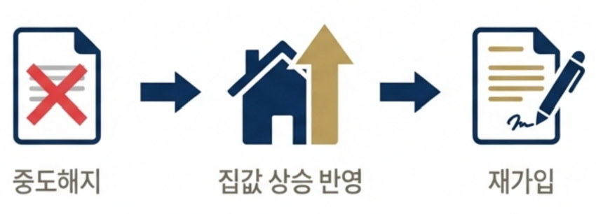 “주택연금 가입 후 집값이 많이 올랐는데, 해지하고 다시 가입하면 월 연금을 더 받을 수 있지 않을까요?”