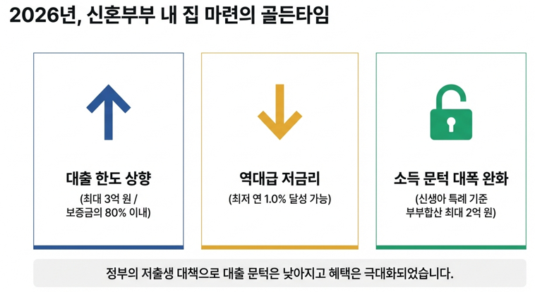 - 소득 상한의 현실화: 맞벌이 가구 비중이 높은 신혼부부의 특성을 반영하여, 신생아 특례의 경우 부부합산 소득 2억 원까지 문턱을 낮추었습니다.
